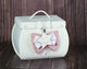 Βαλίτσα βάπτισης τροχήλατη μήλο με δαντέλες εκρού μήλο.