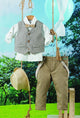 Κουστουμάκι ευκολοφόρετο συνοδεύεται από ψάθινο καπελάκι. Μαζεύει με κουμπί το μανίκι.