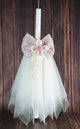 Λαμπάδα κλασική με λουλούδια μακραμέ και φτερό, εκρού μήλο.