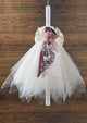 Λαμπάδα με λουλούδια και δαντέλα, εκρού μήλο.